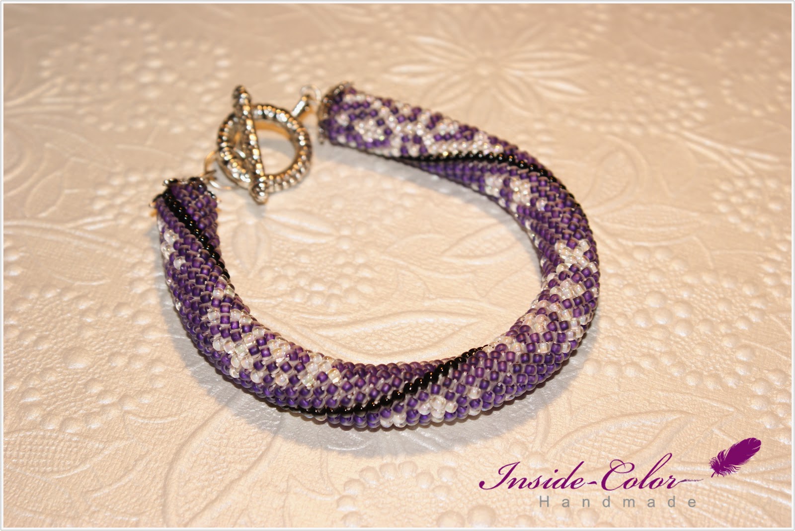 Toho 11/0 opaque jet, inside-color rainbow crystal - creme lined, inside-color crystal - grape linedwzór Eleny