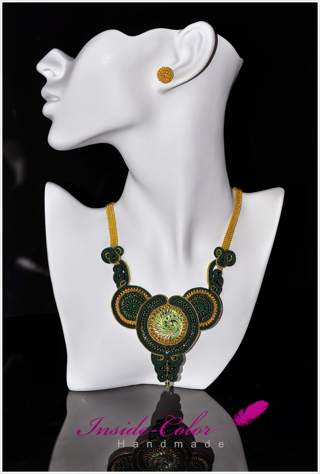 Bransoletka wykonana w technice bead crocheting, czyli sznur szydełkowo-koralikowy. Ukośnik wykonany został na 12 koralików w rzędzie. Bransoletka ma ok. 20 cm z możliwością przedłużenia. Wzorek zapożyczony od Eleny. Do kompletu zrobiłam też takie prościutkie kolczyki.